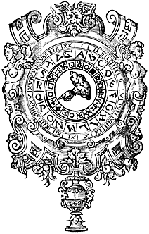 C'est aussi Porta qui met au point un deuxième cadran chiffrant (voir figure ci-dessous), après celui d'Alberti. Le disque intérieur affiche une série de symboles en guise de chiffré. Sur le disque extérieur s'inscrit un alphabet clair ordonné, surmonté d'une série de chiffres romains, alignés par ordre croissant. Les alignements des symboles avec les unités claires génèrent des alphabets de chiffrement pour le moins originaux.