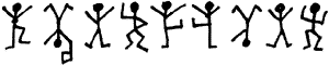 Suddenly, as she spoke, I saw her white face grow whiter yet in the moonlight, and her hand tightened upon my shoulder. Something was moving in the shadow of the tool-house. I saw a dark, creeping figure which crawled round the corner and squatted in front of the door. Seizing my pistol, I was rushing out, when my wife threw her arms round me and held me with convulsive strength. I tried to throw her off, but she clung to me most desperately. At last I got clear, but by the time I had opened the door and reached the house the creature was gone. He had left a trace of his presence, however, for there on the door was the very same arrangement of dancing men which had already twice appeared, and which I have copied on that paper. There was no other sign of the fellow anywhere, though I ran all over the grounds. And yet the amazing thing is that he must have been there all the time, for when I examined the door again in the morning, he had scrawled some more of his pictures under the line which I had already seen.