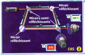 Si Alice et Bob n'ont placé aucune rallonge ou les deux, les photons parcourent la même longueur, quel que soit le chemin emprunté. C'est le cas 2 illustré ci-dessus: un photon 1 de la source laser 1 est forcément repéré dans le détecteur 1; de même si Alice a envoyé un photon 0, Bob l'enregistre à coup sûr dans le détecteur 0. Les deux amis ont donc échangé un bit fiable.