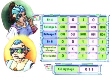 Après avoir échangé et comparé leurs choix de rallonges (mais évidemment pas les 0 ou les 1), Alice et Bob ont défini une clef de chiffrement (011). Ils peuvent maintenant l'utiliser en toute sécurité pour chiffrer leurs messages.