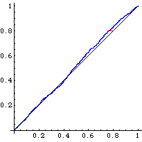 ![]() 1000 nombres, D = 0.0433 > 0.043, refusé de justesse (a = 5%) |