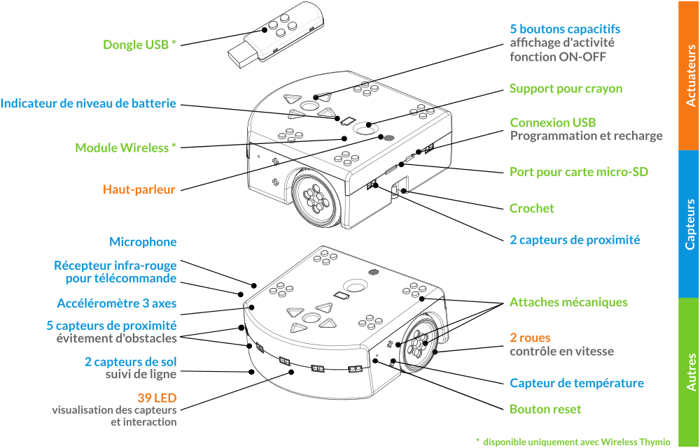 Il faut environ 2 heures pour recharger entièrement un Thymio sur le