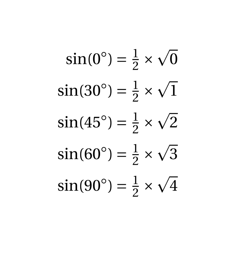 Voici un moyen mnémotechnique pour retenir les sinus de quelques angles particuliers :