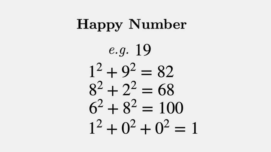 En mathématiques, un entier naturel est un nombre heureux si, lorsqu'on calcule la somme des carrés de ses chiffres puis la somme des carrés des chiffres du nombre obtenu et ainsi de suite, on aboutit au nombre 1.