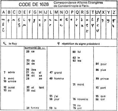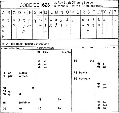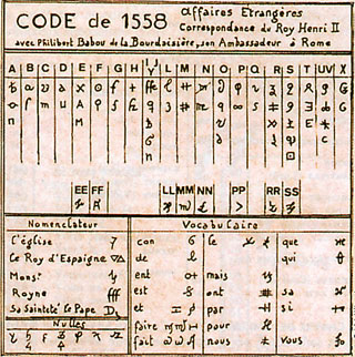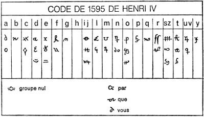 ![]() | ![]() Il semblerait que François Viète ait construit pour Henri IV un code plus élaboré en 1604. |