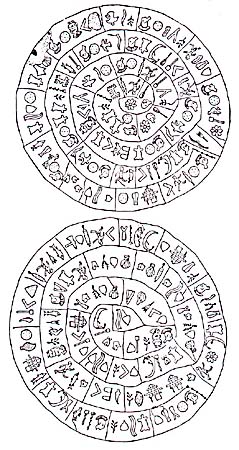 Les traductions proposées vont de l'hymne à Poséïdon au récit de la disparition de l'Atlantide. C'est un fait bien connu des experts en cryptologie que, étant donné un texte chiffré suffisamment court, on peut en proposer à peu près n'importe quel déchiffrement sans qu'il soit possible de décider lequel est le vrai. Or, non seulement le texte du disque de Phaïstos est court, 241 hiéroglyphes, mais on n'en connaît pas la langue. On ne s'accorde même pas sur le sens de l'écriture: du centre à la périphérie, ou l'inverse. On ne risque pas de le savoir, car Shannon et Weaver ont prouvé que la mesure de la propriété mathématique fondamentale des textes, l'entropie, était la même qu'on les lise dans un sens ou dans l'autre.