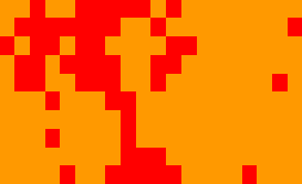 On voit d'abord apparaître de grands fiefs politiques où tout le monde vote dans le même sens. On peut croire à un moment donné que les rouges vont complètement disparaître, mais la petite poignée de rouges fait des émules parmi les jaunes et les deux populations s'équilibrent. Puis, brutalement, les rouges deviennent très nombreux et, pour finir, ils occupent toute la planète.